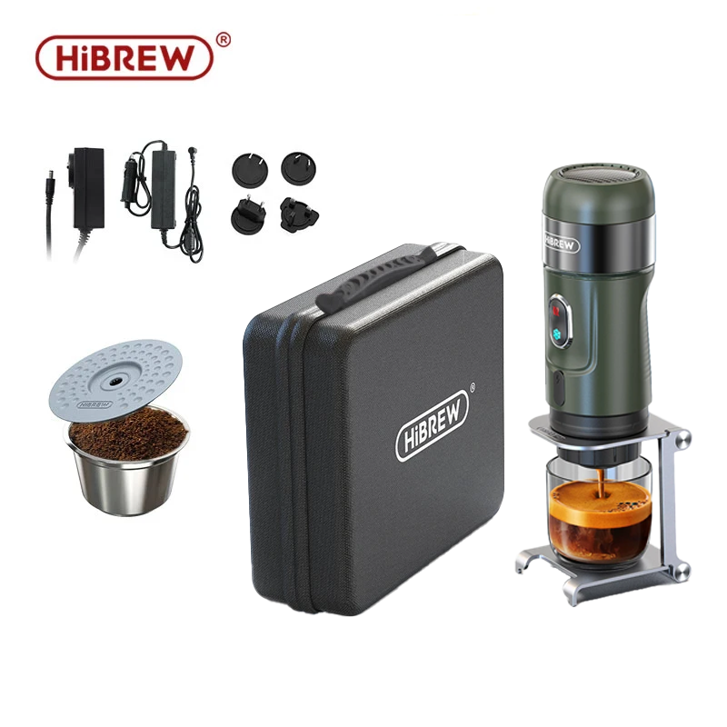 Machine à café H4B + 3 Portes Capsules + Cuillère pour poudre de café + Adaptateur USB + Prise secteur + Valise de voyage + Support Extra-capacité.